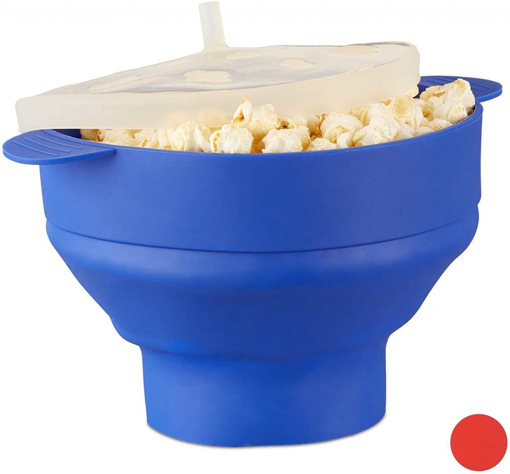 VENTAJAS sistema simple, rápido y fácil de limpiar. El recipiente de silicona se plega sobre si mismo para que su almacenamiento sea fácil y ocupe el mínimo espacio . El recipiente sirve para poder servir o comer las palomitas en el.