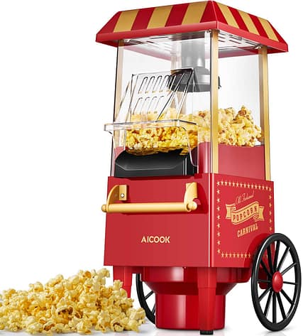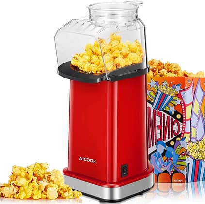 Para hacerlas usando aire caliente los palomiteros suelen ser muy divertidos por sus formas y modelos. Son muy eficaces ya que prácticamente revientan todos los granos y no queman nunca las palomitas.