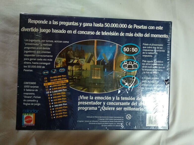 Contenido:1000 tarjetas,5 tableros de respuesta,dinero,fichas de comodin y reglas del juego.