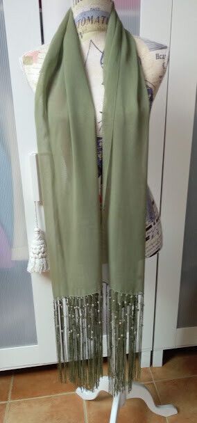 • Fular color verde con con bordado en los extremos  y flecos con abalorios(134)