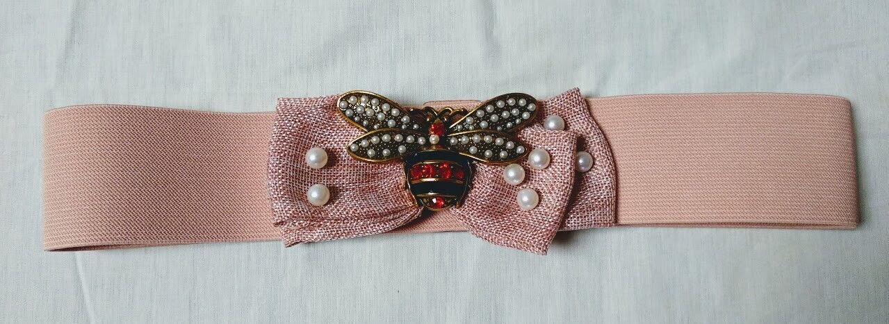 Cinturón elástico con goma color salmón.