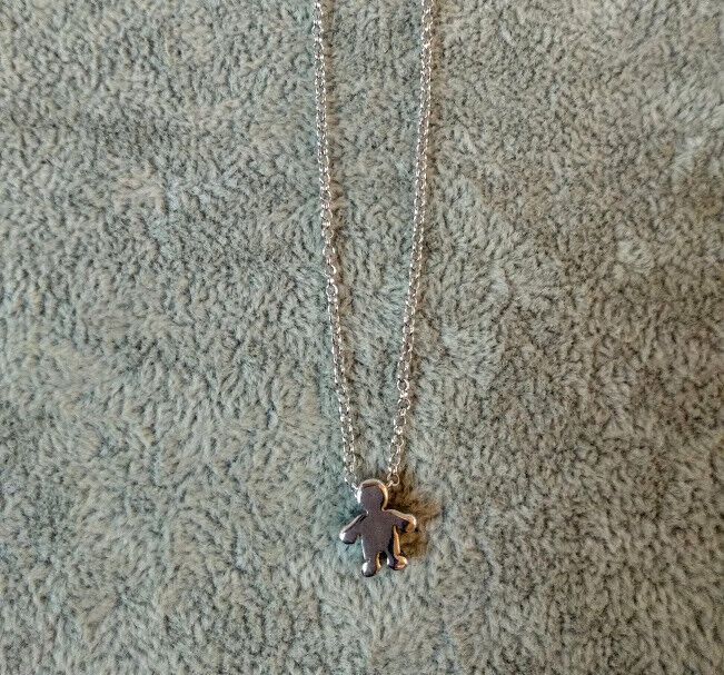 Preciosa y delicada gargantilla en Plata de Ley con acabado de rodio con colgante con figura de un niño.