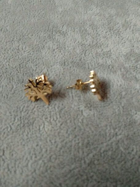 Los pendientes son dos arboles de la vida ,su cierre es de presión o mariposa como se muestra en la foto y su tamaño es 13 mm de alto X 11 mm de ancho.