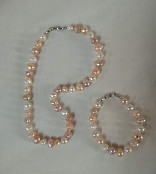 Bonito collar y pulsera de perlas barrocas naturales nuevo y con etiquetas.