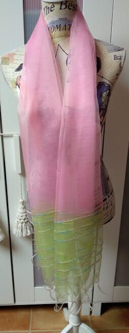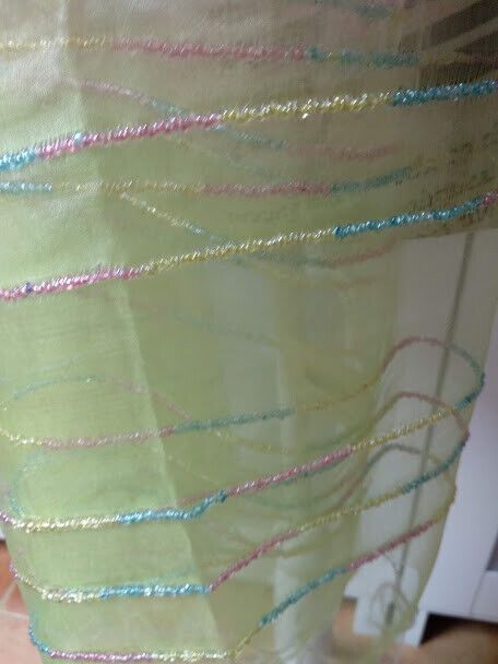 Colore rosa combiinado en la parte inferior con color verde con lineas de pequeñas bolitas de cristal.