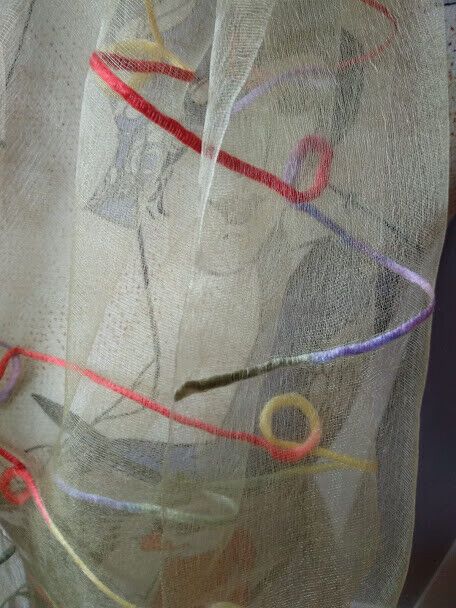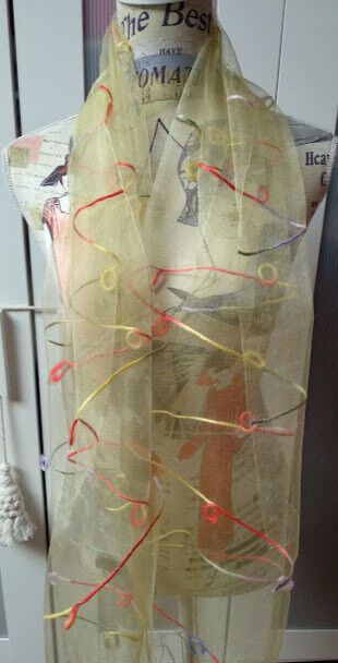 Fondo color amarillo con lineas horizontales en tonos pastel con pequeños adornos circulares.