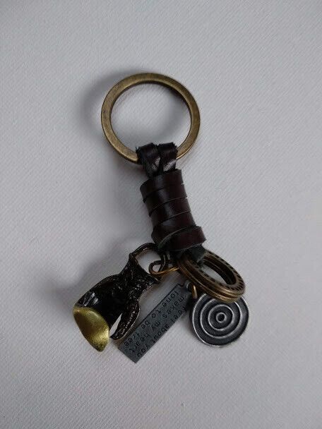LLavero de acero terminación color bronce con guante de boxeo ,medalla,anillas y placa con mensaje.