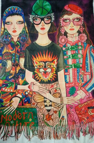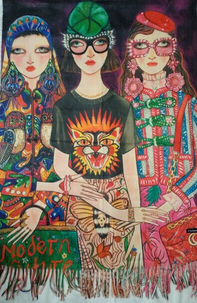Estampado en una cara con posado de tres chicas modernas con alegre colorido.En la otra cara es lisa de un dulce color beige como se muestra en la foto detalle.