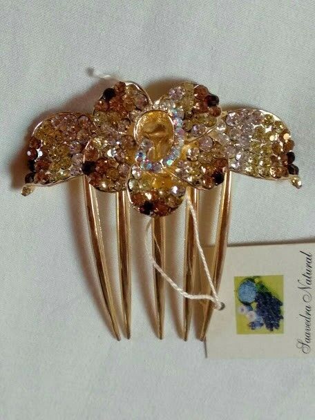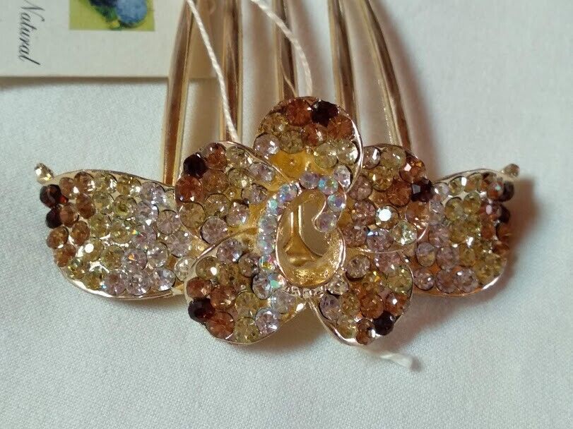 Peineta mujer dorada flor cuajada de similes en tonos de blanco a marron Nueva