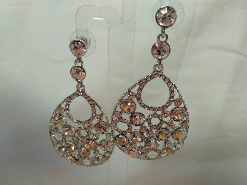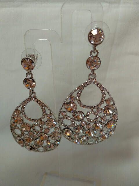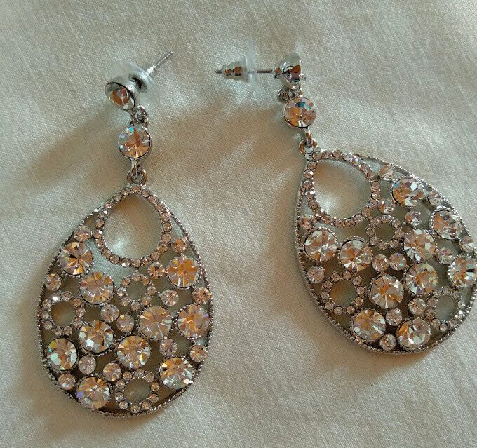 Elegantes pendientes de bisutería plateados de nuestra colección modelo Cristal cuajados de símiles blancos.