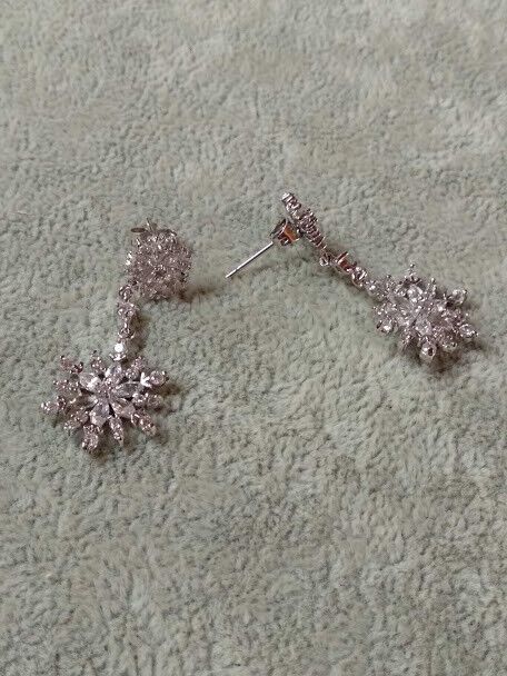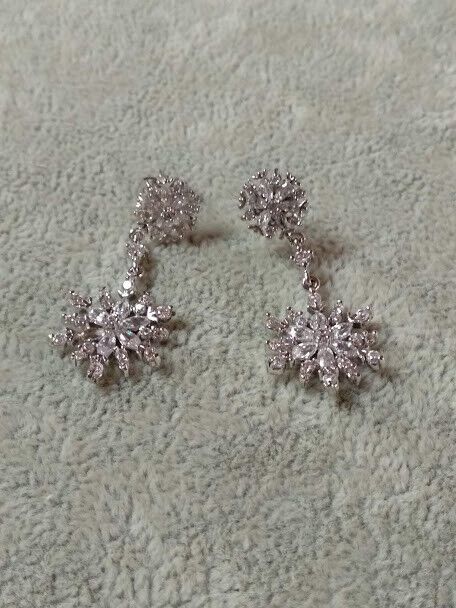 Preciosos pendientes bisuteria rodiada largos con circonitas color blanco formando una estrella
