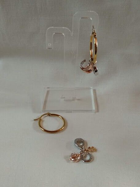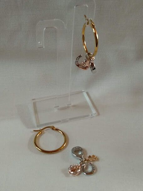 Preciosos y exclusivos pendientes de aro en acero dorado anti-alérgicos con colgante tipo pandora compuesto por una mariquita,una flor y una herradura en dorado y plateado.Se pueden usar con el colgante o quitando lo se convierte en un sencillo pendiente de aro. Los aros tienen un diámetro de 2,4 cm y los fetiches del colgante tienen un tamaño de 1 cm aproximadamente. Únicos y exclusivos Elegantes y femeninos para completar tu look mas sofisticados en eventos o veladas especiales o para tu día a día. Todos nuestros envíos son certificados y se realizan desde España.Suelen llegar en un máximo de 4 a 5 días laborables Por favor si el pedido se realiza desde Canarias tener en cuenta los especiales gastos de envío así como facilitar el nº de D.N.I. Gracias.