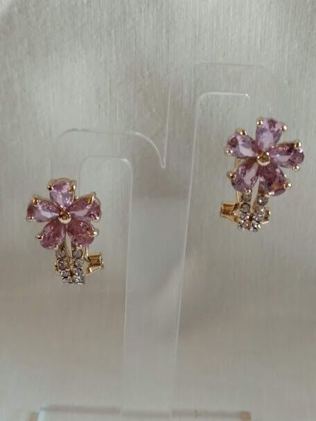 Pendientes de mujer bisutería dorados con flor cuajada de cristales rosas y blancos.