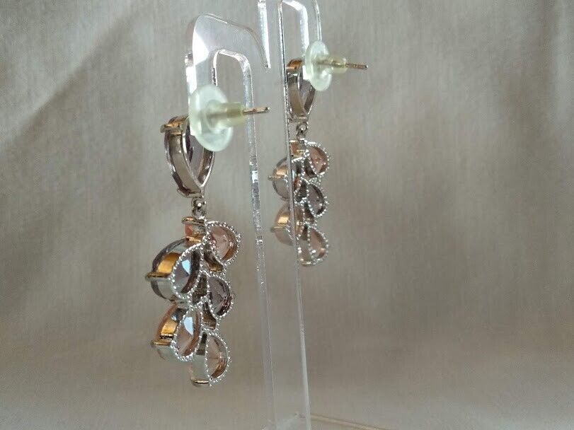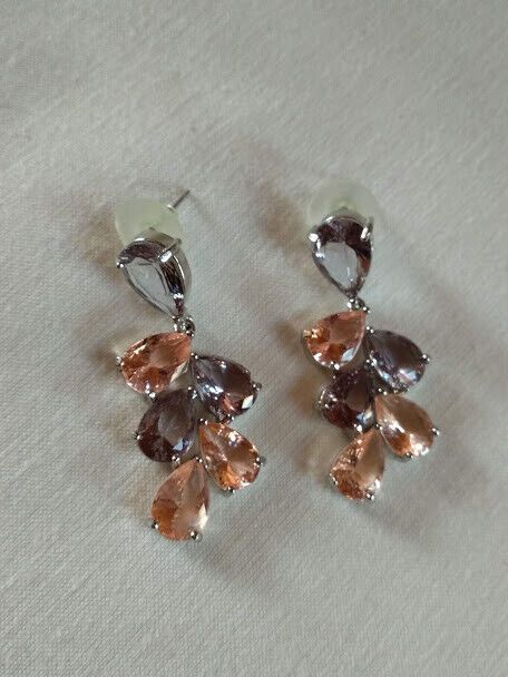 Elegantes y sofisticados pendientes de mujer en bisutería libre de níquel con cristales tallados en color salmon y lila.