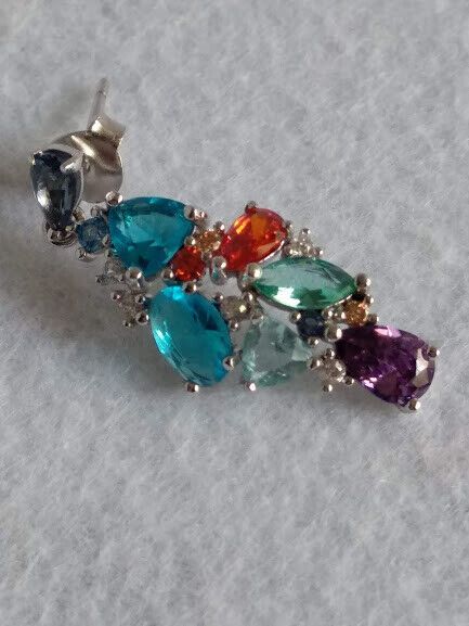Preciosos pendientes en Plata de primera Ley rodiada con piedras multicolor en cascada engastadas con garras para su mejor sujeción
