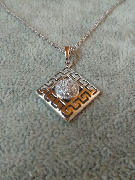 Precioso y delicado conjunto de pendientes y gargantilla en bisuteria libre de niquel con forma de rombo el colgante y sencillos pendientes de cristal sujeto con 4 garras.