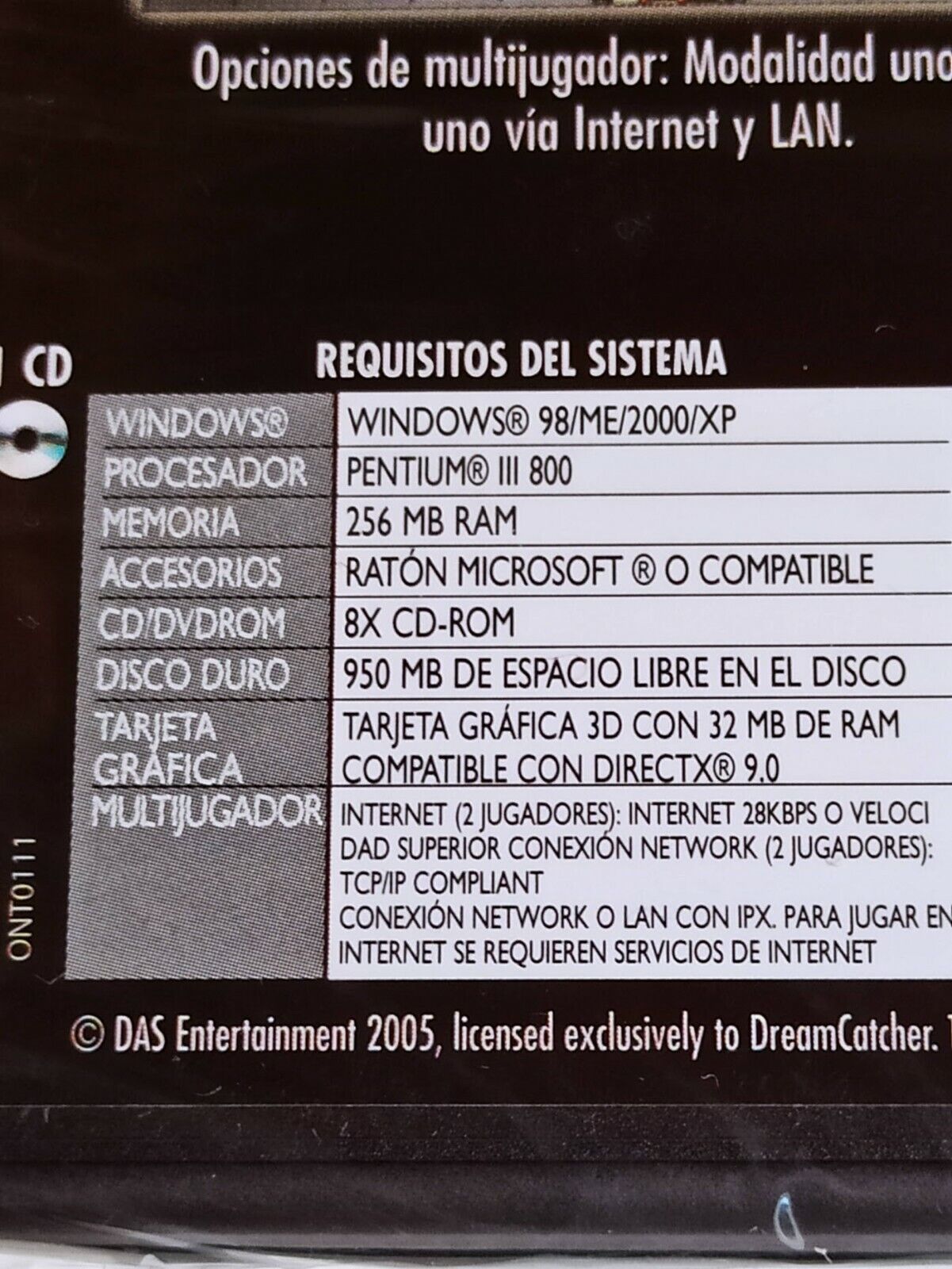 ESTE JUEGO SOLO FUNCIONA CON WINDOWS 98 2000 /XP Y BAJO LOS REQUERIMIENTOS ESPECIFICADOS EN EL JUEGO POR FAVOR VER FOTO DETALLE CON ELLOS
