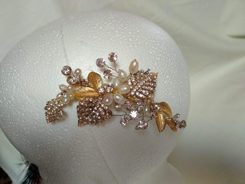 Bonito aderezo mujer para adornar el pelo en color dorado combinando perlas y símiles color blanco de diferentes tamaños
