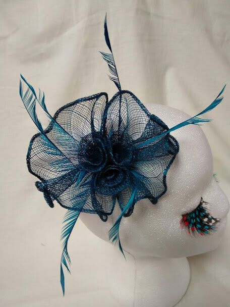 Bonito tocado para ceremonia color azul turquesa con forma de flor confeccionado con rafia y plumas