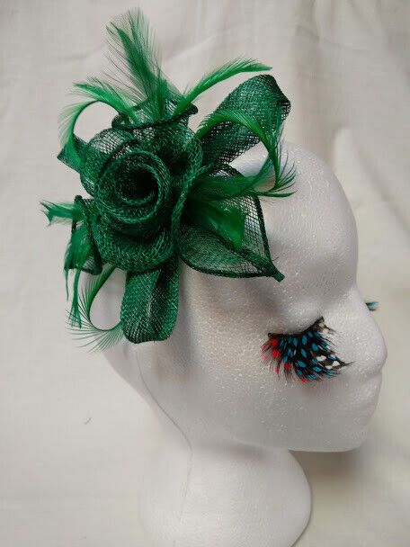 Bonito tocado para ceremonia color verde con forma de flor confeccionado con rafia y plumas